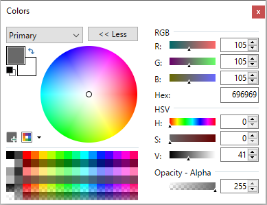 My other initial observations were that there are a lot of different colours used and all greys (except for the centre pixel of course). Next I decided to check the RGB colour values for a few pixels to see if that revealed anything interesting. All pixels had an equal value for the R, G and B values. This seemed relevant. I looked up the ASCII value for curly braces as the flag would need these.