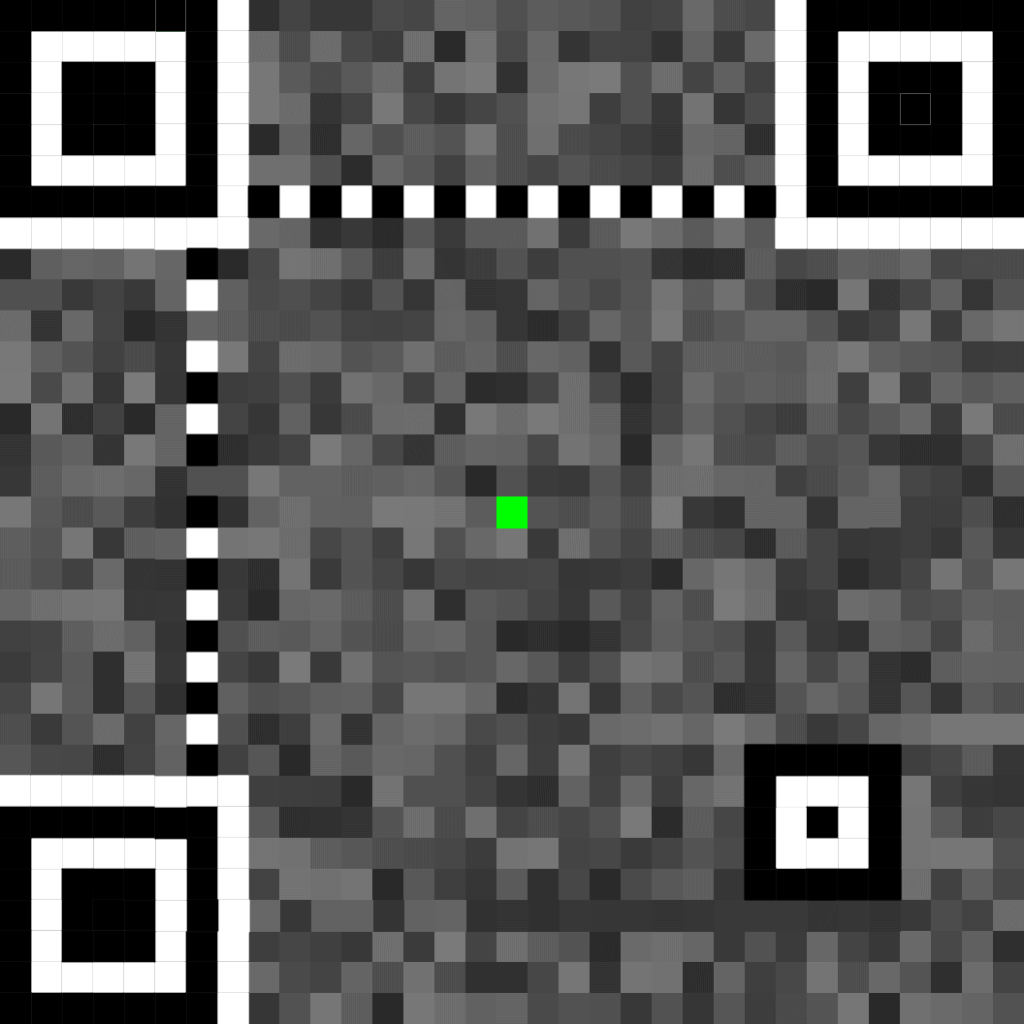I revisited the challenge description now I had some information from the image. The word that jumped out at me was ‘move’. It felt like the green pixel was a starting point and that somehow we would need to move around the image. Still convinced on the end game being a QR code I refreshed my memory on how QR codes are constructed to see if any connections could be made.